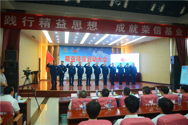 會上,吳海浪副總經(jīng)理介紹公司精益管理項目推行的基本概況并宣布“榮信煤化精益管理項目啟動”。隨后,杜總、吳總對11個樣板區(qū)進行授牌,樣板區(qū)團隊進行了精彩的風采展示。最后,管理層和執(zhí)行層進行莊嚴宣誓并在承諾書上簽字。