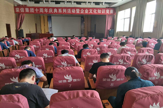 6月27日下午,為慶祝榮信煤化成立十周年,集團在多功能會議室組織開展了企業(yè)文化知識競賽,來自集團20個部門123名員工參加考試。