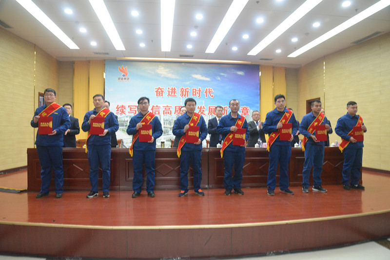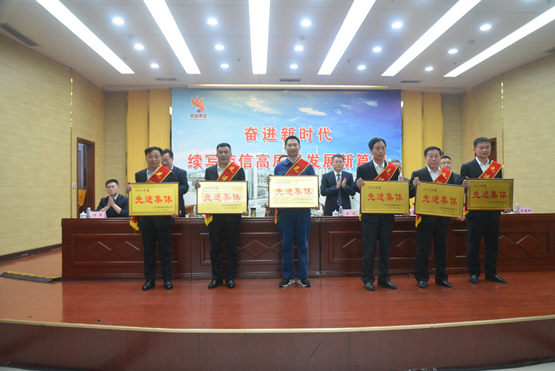 總經(jīng)理司相芳在會議上發(fā)表了以“奮進(jìn)新時代 續(xù)寫榮信高質(zhì)量發(fā)展新篇章”為主題的重要講話。司總指出,2017年,我們收獲頗豐,應(yīng)該說每個部門、每個單位、每個版塊、每個條線都干的總體很好。安全環(huán)保形勢總體平穩(wěn),生態(tài)效益提升,獲得濟(jì)寧市安全文化建設(shè)示范企業(yè)榮譽(yù)稱號。產(chǎn)品產(chǎn)量總體穩(wěn)中有升,經(jīng)濟(jì)效益仍居同行業(yè)最好水平,創(chuàng)榮信歷史新高。生產(chǎn)組織和運(yùn)行管理穩(wěn)中向好,各在建項目正緊張有序推進(jìn)。經(jīng)營業(yè)績突出,抗風(fēng)險能力進(jìn)一步增強(qiáng),榮信品牌不斷提升。2017年榮獲中國產(chǎn)學(xué)研合作創(chuàng)新示范企業(yè)、山東省節(jié)能先進(jìn)企業(yè)、山東省資源循環(huán)利用示范基地稱號,喜獲中國制造業(yè)企業(yè)500強(qiáng)、中國民營企業(yè)制造業(yè)500強(qiáng)、山東民企100強(qiáng)、山東省石油和化學(xué)工業(yè)100強(qiáng)及山東煤化工行業(yè)10強(qiáng)。特別值得點(diǎn)贊的是,經(jīng)第三方評價機(jī)構(gòu)現(xiàn)場評價、省級工業(yè)和信息化主管部門評估確認(rèn)以及專家論證、公示等環(huán)節(jié),山東榮信集團(tuán)符合《中國制造2025》綠色制造體系建設(shè)標(biāo)準(zhǔn),剛剛被國家工業(yè)和信息化部授予“綠色工廠”稱號,成為了全國綠色制造先進(jìn)典型示范單位。這些成績的取得,是黨委政府、股東單位和社會各界大力支持的結(jié)果,是廣大干部員工共同努力、頑強(qiáng)拼搏的結(jié)果,也傾注著員工家屬、廣大客戶、合作伙伴的關(guān)心支持。