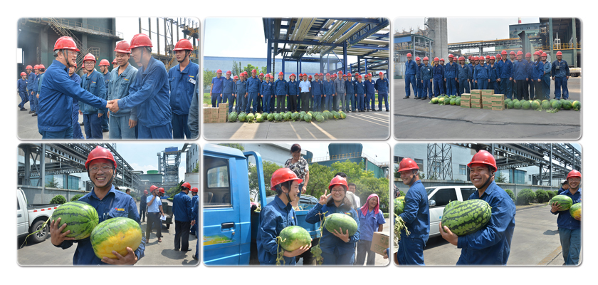 7月18日,集團(tuán)公司總工程師杜漢雙、人力資源部部長(zhǎng)程冬梅、工會(huì)副主席王乃峰等領(lǐng)導(dǎo)率領(lǐng)慰問(wèn)組來(lái)到生產(chǎn)區(qū),看望慰問(wèn)奮戰(zhàn)在一線的廣大職工,并為大家送上西瓜、雪糕等防暑降溫慰問(wèn)品,把清涼送到員工的手上,把集團(tuán)關(guān)懷送到員工心坎。