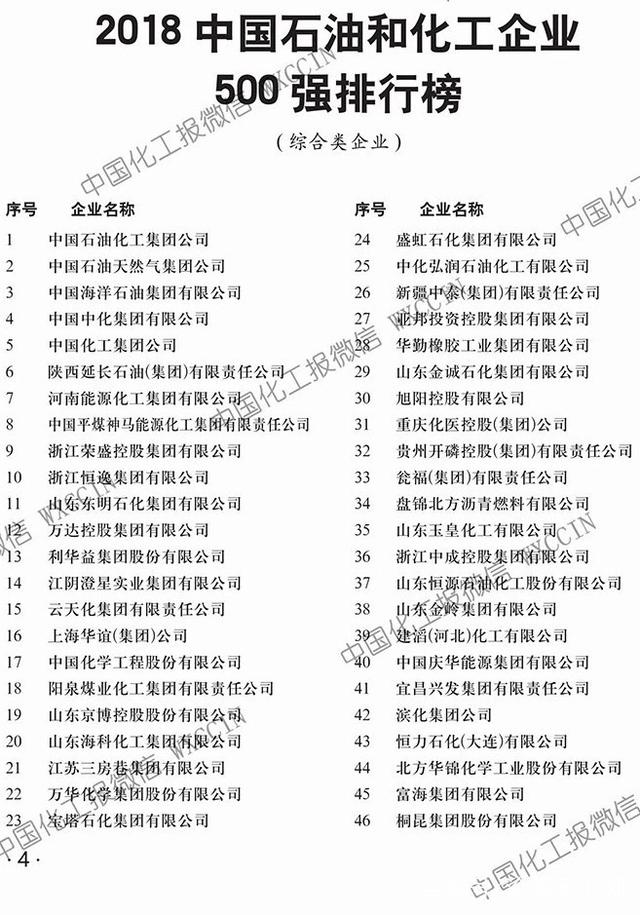 據(jù)悉,自2003年以來,中國石油和化學工業(yè)聯(lián)合會和中國化工企業(yè)管理協(xié)會已經(jīng)連續(xù)十五年向社會發(fā)布了中國化工企業(yè)500強排行榜和分析報告,為政府和社會提供了我國化工大企業(yè)發(fā)展現(xiàn)狀和態(tài)勢的獨家權(quán)威信息。從2017年起,這個榜單首次將石油和石油煉制行業(yè)納入其中,形成了中國石油和化工全產(chǎn)業(yè)鏈的組合與發(fā)布。該榜單依據(jù)年度收入排序的國際慣例,產(chǎn)生了“2018中國石油和化工企業(yè)500強”。