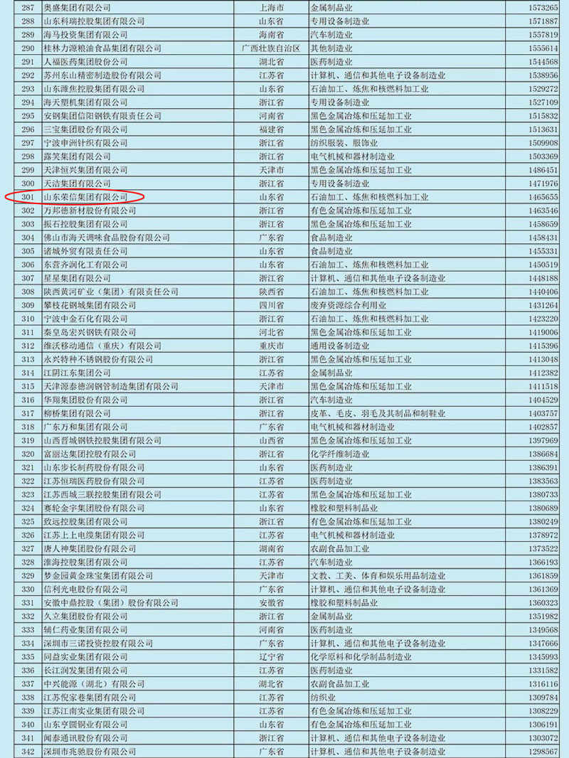8月29日上午,由全國工商聯(lián)和遼寧省人民政府共同主辦的2018中國民營企業(yè)500強峰會在沈陽召開,會上發(fā)布了2018中國民營企業(yè)制造業(yè)500強名單。其中山東榮信集團榜上有名,位居榜單第301位。這是繼公司建業(yè)以來先后于2014年、2015年、2017年榮獲該項榮譽之后的又一重大殊榮。