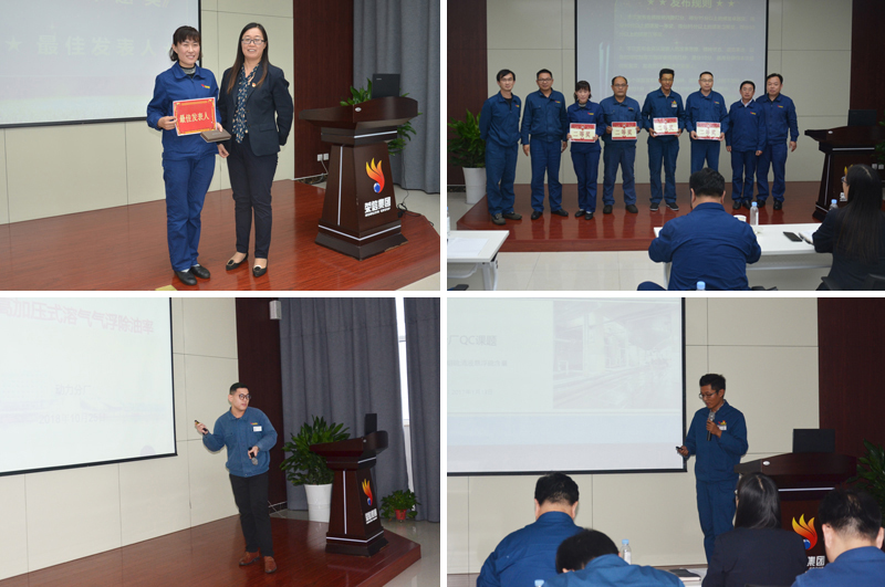 參選的QC課題緊緊圍繞生產(chǎn)技術(shù)改造、檢維修費(fèi)用縮減、環(huán)保設(shè)施升級(jí)等難題展開(kāi)調(diào)研和改善。經(jīng)過(guò)講演人員的細(xì)致解說(shuō),評(píng)審小組對(duì)各項(xiàng)成果進(jìn)行現(xiàn)場(chǎng)點(diǎn)評(píng)。最終,動(dòng)力分廠發(fā)布的《提高加壓式溶氣氣浮除油率》、恒信科技發(fā)布的《提高產(chǎn)品精制的生產(chǎn)能力》斬獲一等獎(jiǎng),備煤分廠發(fā)布的《縮短細(xì)粉碎機(jī)開(kāi)車(chē)時(shí)間》等QC課題榮獲二等獎(jiǎng),甲醇分廠講解人常慶英獲得“最佳發(fā)表人”獎(jiǎng)。