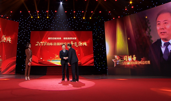 1月16日,“山東省2018年循環(huán)經(jīng)濟(jì)年度頒獎(jiǎng)盛典”在山東廣播電視臺800平米演播室舉行。活動(dòng)評選出了“山東省2018年循環(huán)經(jīng)濟(jì)十大年度人物”、“十大科技成果獎(jiǎng)”、“年度十件大事”等獎(jiǎng)項(xiàng),山東榮信集團(tuán)司相芳總經(jīng)理榮獲“山東省2018年循環(huán)經(jīng)濟(jì)十大年度人物”榮譽(yù)稱號,集團(tuán)獲得山東省循環(huán)經(jīng)濟(jì)科技成果獎(jiǎng)。
