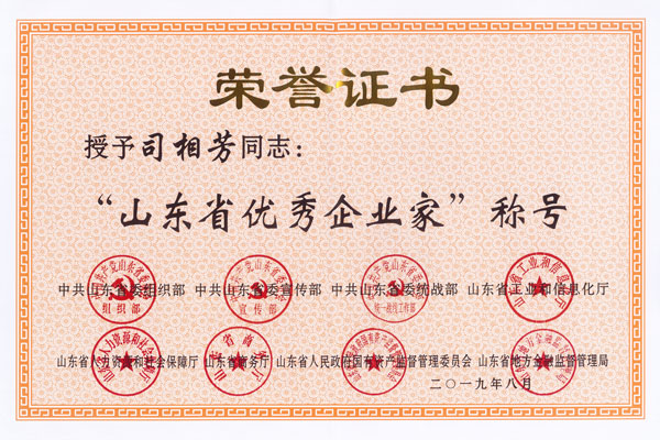 近日,山東省推進改革舉措落實落地工作會議暨山東省優(yōu)秀企業(yè)家、優(yōu)秀企業(yè)表彰大會在山東大廈舉行,會議對為山東省經(jīng)濟發(fā)展做出重要貢獻的優(yōu)秀企業(yè)和企業(yè)家進行了表彰。山東恒信集團董事長,山東榮信集團總經(jīng)理、黨委書記司相芳被授予“山東省優(yōu)秀企業(yè)家”榮譽稱號。