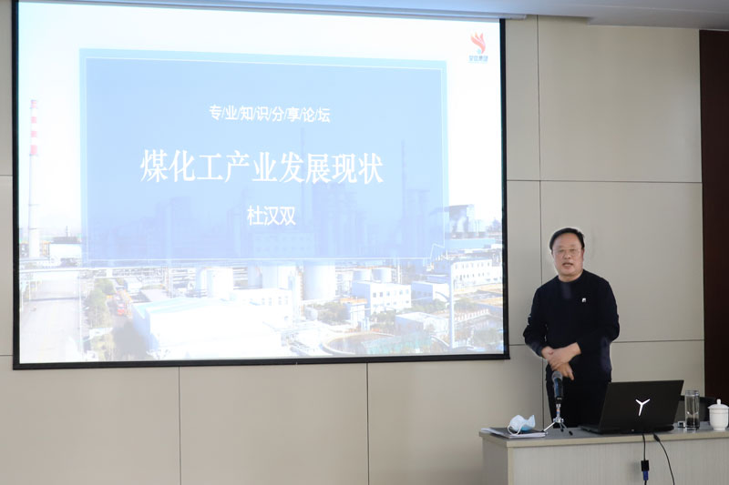 論壇上,杜漢雙總工程師從煤炭在能源中的地位、中國(guó)的能源結(jié)構(gòu)講起,通過(guò)理論結(jié)合案例,緊緊圍繞現(xiàn)代煤化工的發(fā)展、煤化工產(chǎn)業(yè)鏈延伸具體展開(kāi)分析,對(duì)公司二次創(chuàng)業(yè)中針狀焦工藝、煤制乙醇、氫氣島等系列項(xiàng)目建設(shè)作了全面深刻的詳細(xì)解讀,不僅讓大家清晰地了解行業(yè)發(fā)展現(xiàn)狀及企業(yè)項(xiàng)目?jī)?yōu)勢(shì),更激發(fā)起大家干事創(chuàng)業(yè)的熱情。兩個(gè)多小時(shí)的授課,大家聽(tīng)得專(zhuān)注,學(xué)得認(rèn)真,記得仔細(xì),十分解渴。授課結(jié)束后,杜總現(xiàn)場(chǎng)與大家進(jìn)行了互動(dòng),解答了大家關(guān)心的相關(guān)問(wèn)題。