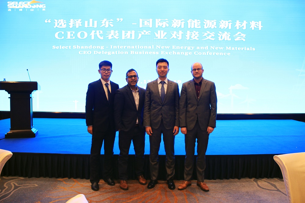 對接會分上午和下午兩個階段,上午主要為路演推介,來自美國、加拿大、以色列、西班牙、瑞士等國家的17家企業(yè)以及山東省9家企業(yè)CEO及高管登臺路演,推介氫能、燃料電池、風(fēng)能、納米材料等領(lǐng)域的新產(chǎn)品與新技術(shù);下午96家省內(nèi)企業(yè)與國際企業(yè)進(jìn)行了一對一洽談對接。
