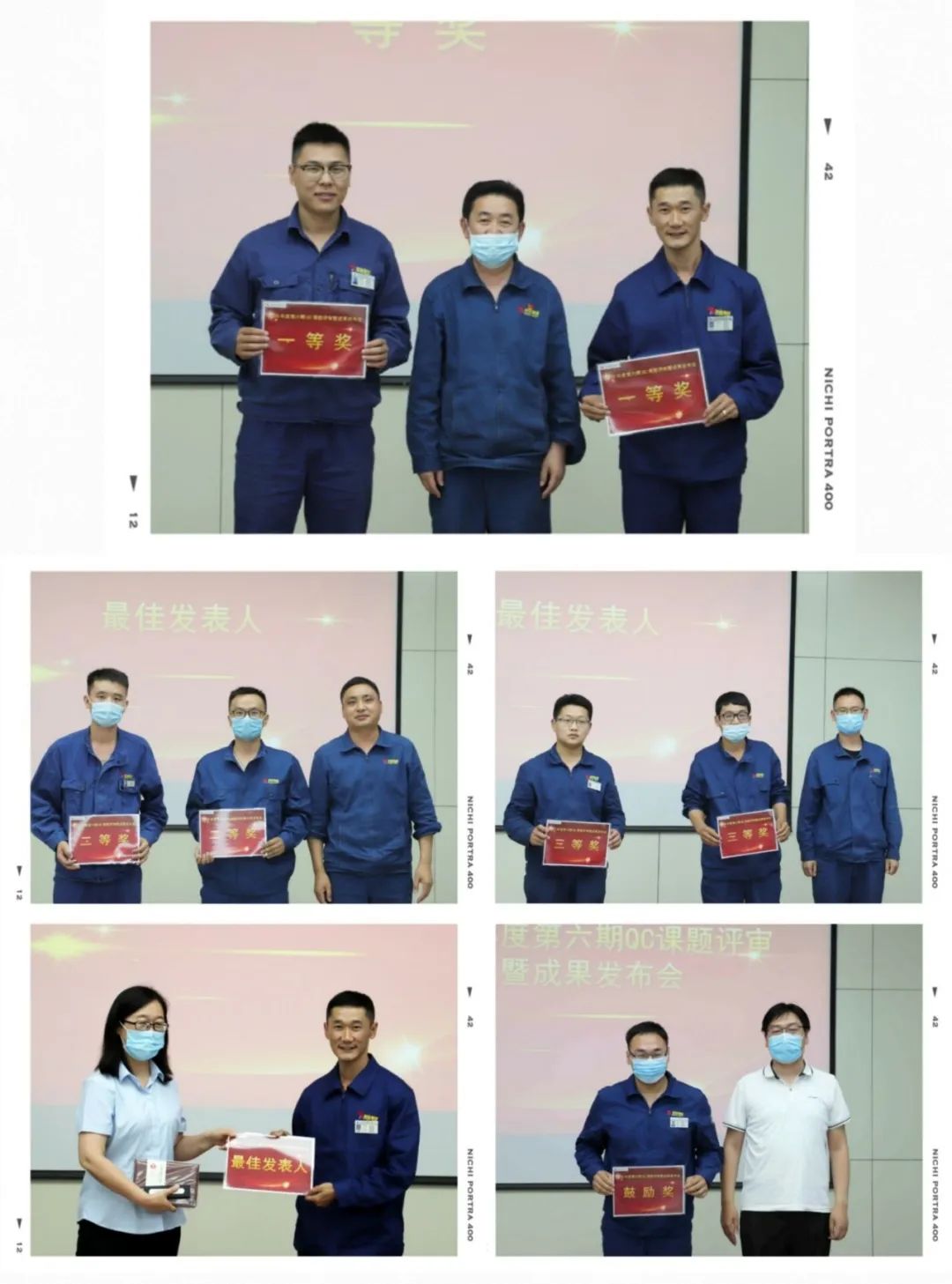 評委嚴(yán)格按照《榮信集團(tuán)QC小組活動成果評審表》進(jìn)行評審打分,最終評選出一等獎、二等獎、三等獎各2個,最佳發(fā)表人一名,評委們分別上臺為他們頒獎,加以鼓勵。